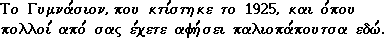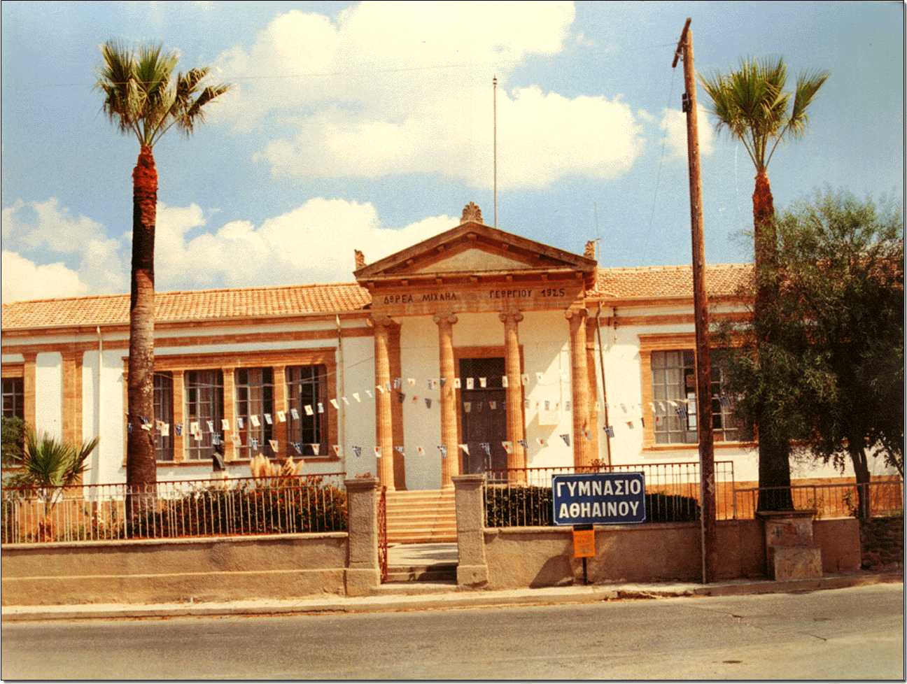 The Gymnasion (High-school) built in 1925, after a contribution by Michael Georghiou.  |