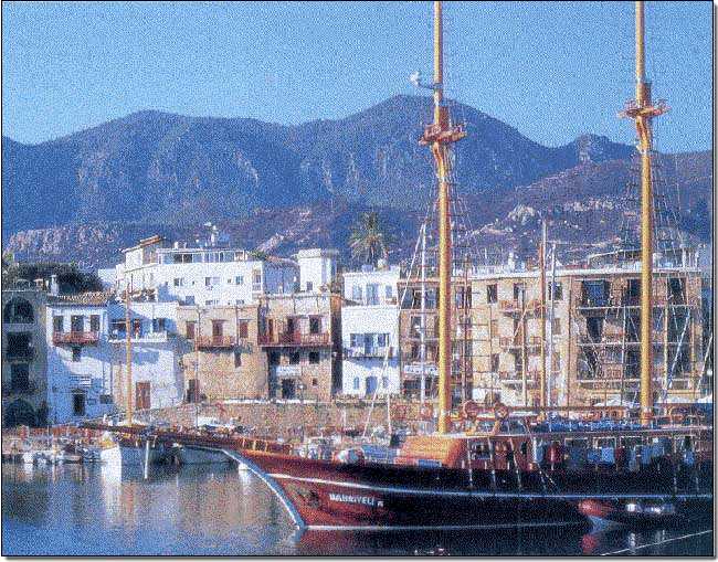 The little harbour with the Castle in the background and the waterway entrance
