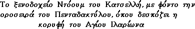 The "Dome-Hotel" and part of its surrounding area with the majestic peak of Ayios Hilarionas on the Pentadaktylos mountain range as background