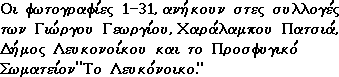 The photographs belong to the collections of George Georgiou , Charalambos Patsia , the office of the town of Levkoniko , and their refugee club . |