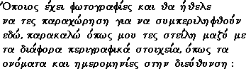Whoever has any photographs and would like them to be included here, please send them along with all descriptive information, like names and dates to the address below :