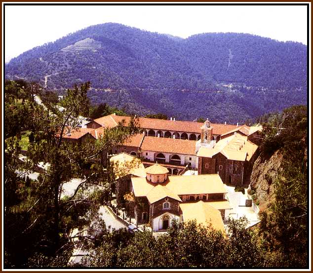 Scholastic research has shown that Kykkos made a considerable contribution to sacred pictorial art and ecclesiastical literature . This is shown by the large number of manuscripts written on parchment in the twelfth and thirteenth centuries which were used in Kykkos and which are nowadays kept in the French National Library in Paris , the Vatican Library and other major European libraries . Some of these manuscripts furnish valuable information on the abbots and famous persons from Kykkos's past . During Ottoman rule , in Cyprus the old Byzantine tradition of the writing and decoration of books was continued . This can be seen by the numerous liturgical works written by calligraphers and illuminators in an unusual manner which are to be found in the monastery library , the Library of the Patriarchate in Jerusalem , and elsewhere . The illuminations and miniatures in these manuscripts reflect the great influence of the baroque calligraphic schools in Italy which is intermixed with elements of Cypriot popular art (examples in the introduction , fig. 14-16 , p.40f). Various pilgrims from the West and the East report important details about the past of Kykkos . In 1683 , the Dutchman Cornelis van Bruyn toured Cyprus which at that time was suffering from swarms of locusts . In order to protect the country , Van Bruyn reports , "the inhabitants organised litanies in which they carried round the icon of the Virgin Mary holding Christ in her arms . It is the work of the Apostle Luke which is normally in a monastery called Chicho (Kykkos) with 400 monks . At certain intervals , some monks travelled to Russia and other places in order to carry out the most varied tasks . The monastery is situated on Mount Olympus - the highest on the island . In periods of drought , the icon is carried from the monastery into the church service . The face of the icon is turned to the side from which rain is expected . The same divine service was held against the invasion of locusts , and as soon as the icon was fastened on a pedestal , birds came and descended on the locusts , eating some of them . At that moment , a great gale arose and swept the locusts straight out to sea . The birds which had eaten the locusts had - so it was said - never been seen on Cyprus before and will never return . At the order of the Pasha , nobody was permitted to kill the birds , and if anyone did nevertheless dare to do so , he was put to death . " The Russian monk Basil Grigorovich Barsky , who visited the monastery in 1727 and 1735 , left informative reports on Kykkos . The main church is a basilika ; the iconostasis may be dated to the 18th. century . Some of the icons in the iconostasis come from the 17th. century . The frescoes in the main part of the restored church were painted recently by the well-known Cypriot painter George Georgiou . The frescoes in the other buildings in the monastery were done a decade ago by Greek , Romanian , Serbian , Bulgarian and Cypriot painters . Impressive are the mosaics , a recent work by the Cypriot artist Philippos Kepolas . In the church there is a special room in which a large collection of old icons is kept . The small ecclesiastical museum (a new , large museum is due to be completed shortly) is located in the chapel , near the entrance door of unusual design . Here one can view crosses , relics ,vestments , golden shrines and other objects of historical value . In addition to all these things , there are numerous old books . The finest among them are the printed Russian gospels decorated with precious stones which were presented to Kykkos in the 18th. and 19th. centuries by various Russian church and state dignitaries . Under the Turks , it was prohibited to call the faithful to divine service with bells . Only at the end of the 19th. century was it permitted to build a bell tower in which five bells hang . The heaviest one weighs 1280 kilograms , according to an inscription underneath the edge of the bells it was a gift of the Russian Tsar Peter the Great and his wife Catherine . Kykkos nowadays has a valuable library with some 15,000 printed volumes - some dating from even the early 16th. century . The monastery collection includes more than a hundred Greek manuscripts . Among them are parchment fragments from the 10th. century . The churchyard in Kykkos is accessible through two entrances from the south and east . The buildings around the main church , including the abbot's residence , were erected , together with those on the eastern side , between 1700 and 1755 . The complete restoration of the Kykkos Monastery has been accomplished thanks to the great efforts of the Most Reverend Fr. Nikiphoros , the present abbot of Kykkos . |