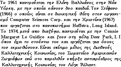 In 1961 he gets married to Helen Vallianos in New York City and has two children. Stephen (1966) who is an executive at the Computer Sciences Corp. in NY City and Christine (1967) who works at the Hoffstra University in Long Island. Since 1974 (after a divorce) he has been married to Connie Margaret Le Guidice and have their residence in Deer Park, Long Island-NY, USA where he has his studio and creates art for those who commission him. He is an honorary member of "The International Society of Artists" and "The American Artists Club" while he has been the Vice President of the Long Island Art League. |