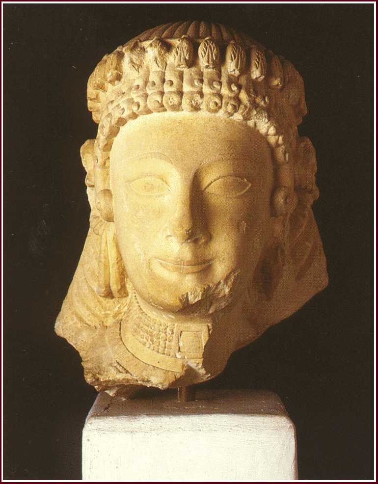 Limestone head of a female statue (600-475 B.C.) .