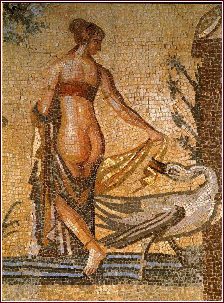 Mosaic "emblem" depicting "Leda and the Swan" (3rd century A.D.) .