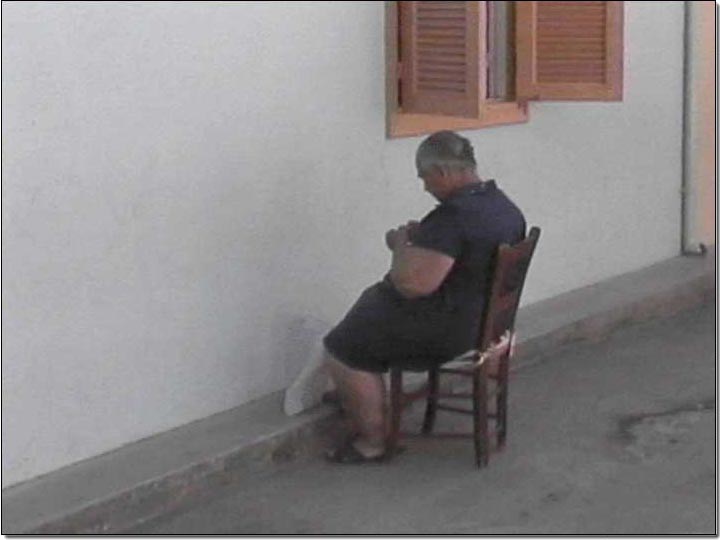 On the left, a relief above a church door. I assume this is a symbol of Jesus Christ, the lion or it could be the coat of arms of the Lusignans. On the right picture we observed quite a generational gap. The older generation are the primary keepers of unique Cypriot traditions. The lady is doing crochet-work. The younger generation seems much more European.  |