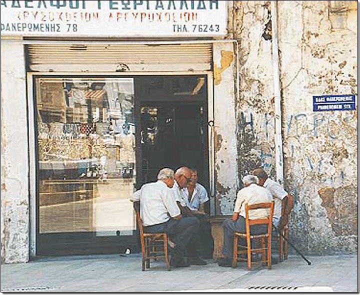 Windows in Nicosia give a sense of the charm of the old city, also old men playing backgammon. Both in Phaneromeni Street.