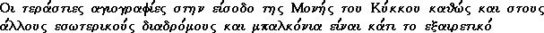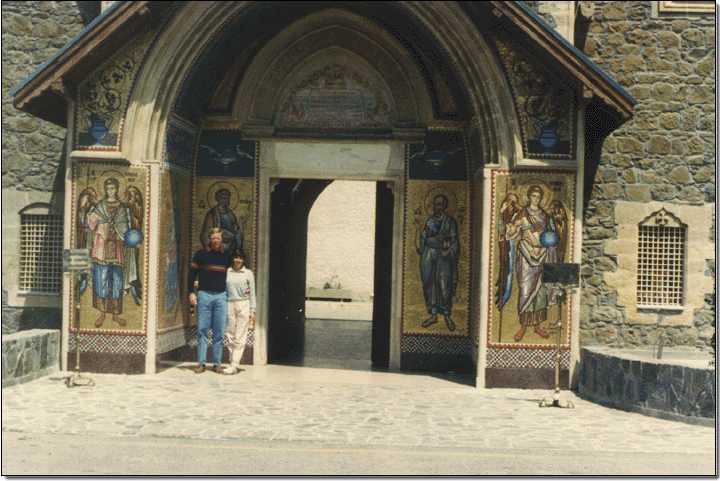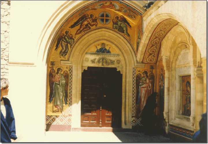 The very beautiful "agiographies" - (frescoes or mosaics I don't know) on the walls of the Kykkos Monastery