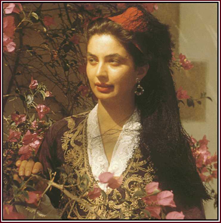 'They have a taller and more stately figure , and the features , particularly of the women of Nicosia , are regular and dignified , exhibiting the elevated cast of countenance so universally admired in the works of Grecian artists . At present , this kind of beauty seems peculiar to the women of Cyprus ; the sort of expression exhibited by one set of features may be traced , with different gradations , in them all . Hence were possibly derived those celebrated models of female beauty conspicuous upon statues , vases , medals , and gems of Greece : models selected from the throng of Cyprian virgins , who , as priestesses of Venus , officiated at the Paphian shrine .' |