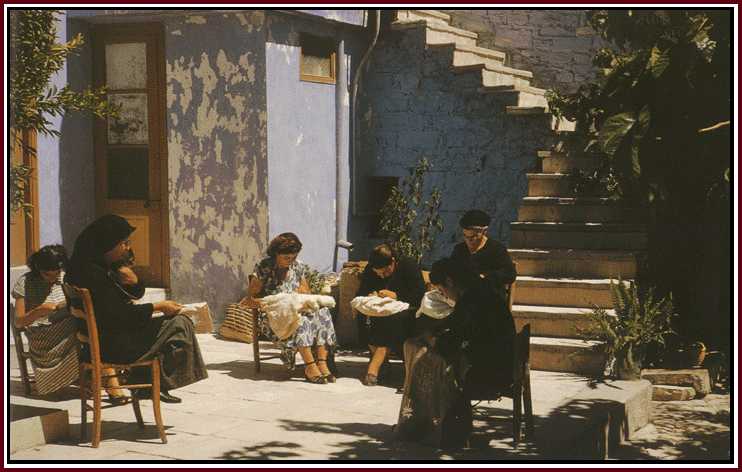 It was the practice for village-folk to whitewash their houses for Easter. At Lefkara and Kato Dhrys it was a case of a 'bluewash' rather than a whitewash. Whatever the reason or tradition, the blue courtyards and seasonal plants and flowers have a rare beauty. |