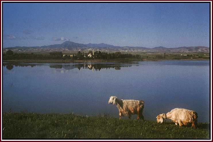 The Khalat i Sultan Tekye or the Tekke of Umm Harám at the far end borders of the lake marks the spot where the lady Umm Harám , a daughter of Milhán , contemporary and relation of the Prophet Mohammed , was buried after she fell off her mule when she visited the island in 694 . |