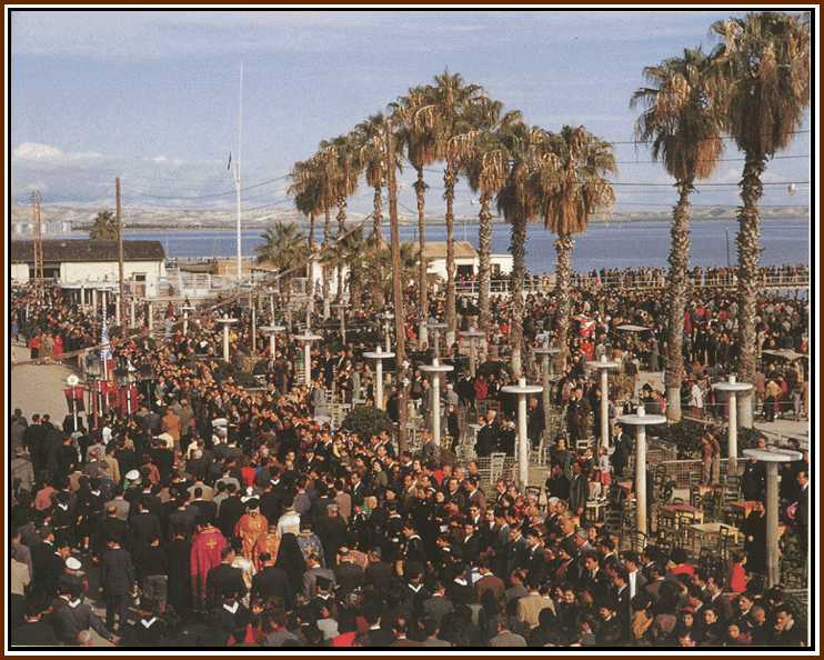 Perhaps one of the most vivid childhood memories was that of the annual religious procession on Epiphany Day . From our balcony we watched the Mayor of the town and other dignitaries following the Bishop of Larnaca , priests and deacons of the Church of St. Lazarus in their colourful robes heading for the pier ... |