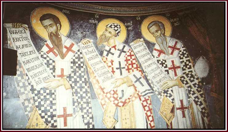 Fig . 108 : The church fathers Basil , Cyril of Alexandria and John the Benefactor , mid-sixteenth century .