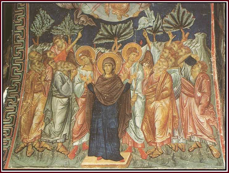 Fig. 23 : Fresco from the Palaiologan period , the Ascension of Christ . Excerpt . Pelendri , third quarter of the 14th. century .