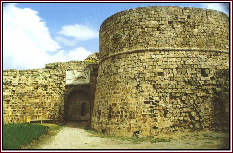 Fig . 6 : The ' Othello Tower ' in Famagusta , a legacy of the Venetians . Above the gate can be seen their heraldic animal .