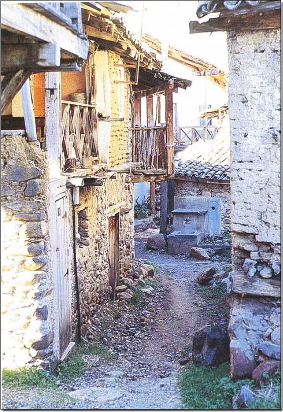 A narrow street in the village of Kakopetria with the old traditional form of houses found on the mountains.